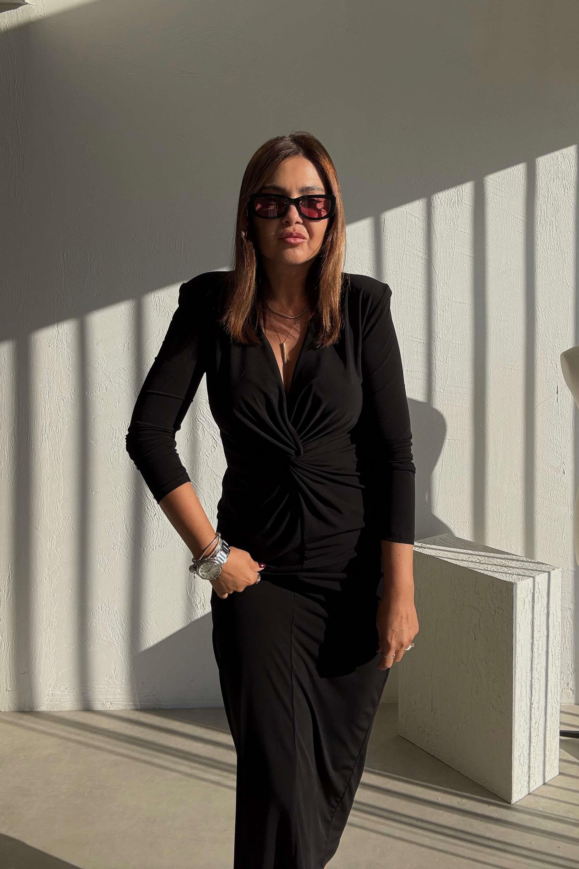 Siyah Midi Boy Elbise